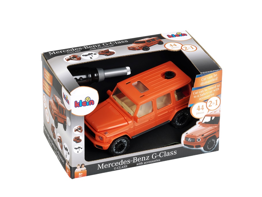 Das Mercedes-Benz G-Klasse Schraubauto enthält ein Schraubsystem zum Zusammenbauen und Zerlegen des Autos. Es ist im Maßstab 1:24 und im typischen Mercedes-Benz Design gehalten.