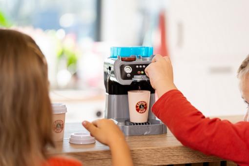 Zu der schicken Kaffeemaschine gehört zahlreiches, modernes Zubehör: zwei Kaffeebecher mit Deckel für Kaffee to go, ein Portafilter, drei Kaffeepads, zwei Zuckerbeutel und ein Kaffeestempel.