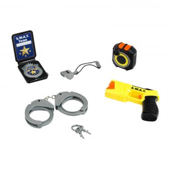 Das Set enthält alles, was kleine Spezialkräfte für ihre Einsätze brauchen: eine robuste Weste mit realistischen Patches, eine Body Cam (Dummy), eine Pistole mit Licht- und Vibrationseffekten, Handschellen mit Schlüssel, einen Spezial-Ausweis mit Etui und eine Trillerpfeife. Perfekt für actionreiche Abenteuer!